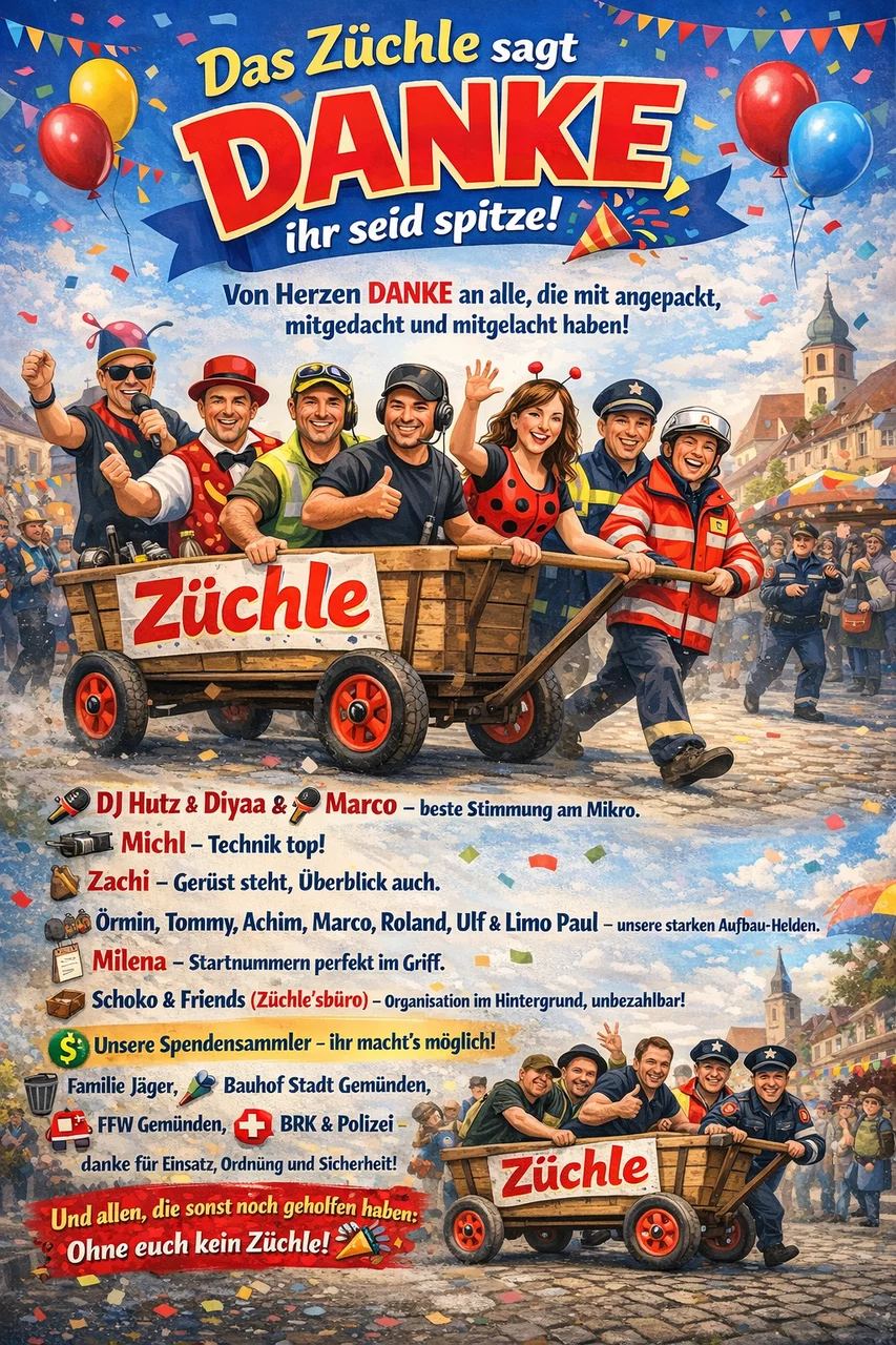 Das Gemünnemer Trottoirzüchle blieb seinem Charakter treu: Ein Straßenzug, bei dem jeder mitmachen kann, ohne auf große Motivwagen oder Vereinskorsos angewiesen zu sein. Die traditionellen „Wächelich“ – kreativ gestaltete, handgezogene Wagen und Figuren – belegen bis heute den besonderen, bodenständigen Charme dieser Veranstaltung.